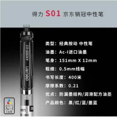 商品名称:得力S01中性笔签字笔